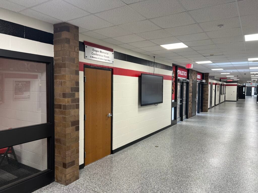 The NDSCS Entrance Reconfiguration successfully turned an underutilized portion of the vestibule into a functional conference room while preserving a streamlined main entrance. The project demonstrates how existing space can be reimagined to meet new needs, providing NDSCS athletics with a practical and well-placed meeting space that enhances their daily operations.