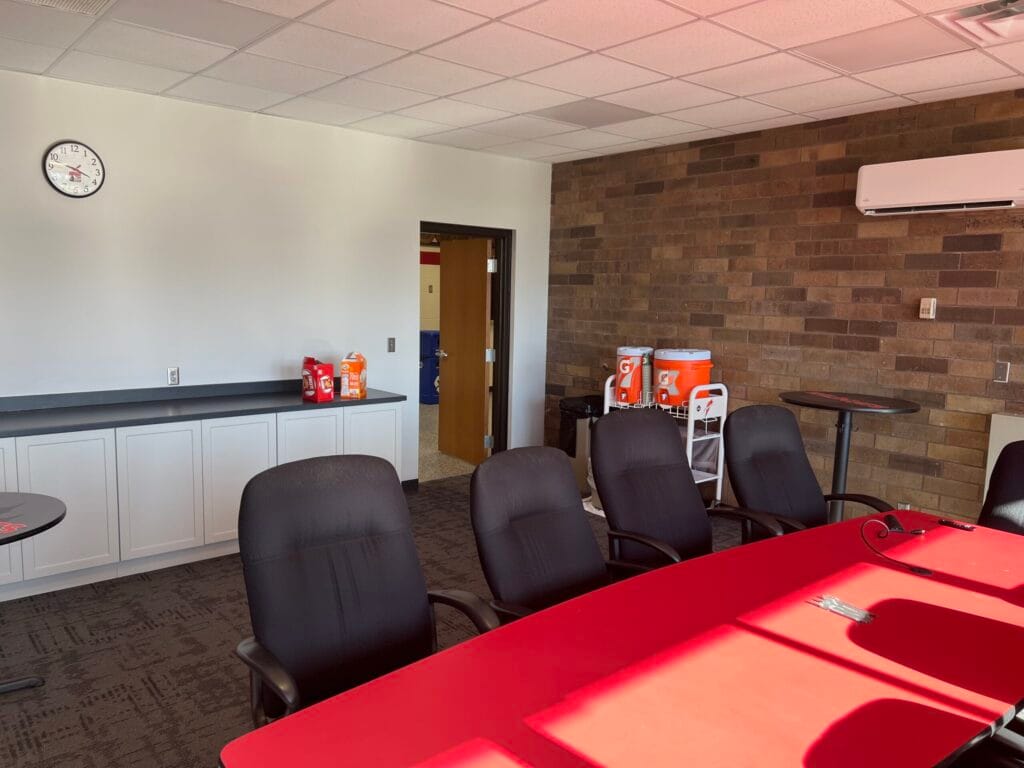 This newly created space provides the athletics department with a private, professional meeting area directly connected to the athletics building—right where they needed it most.