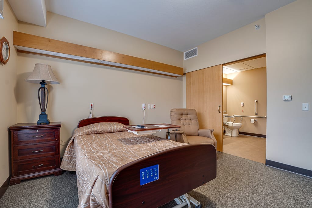 A key component of the PioneerCare Center addition and remodel was reconfiguring shared living spaces to promote privacy and dignity for residents. Our team converted eight shared bedrooms into sixteen private nursing home suites, each with a newly added adjoining bathroom. This transformation elevated the quality of care, ensuring that every resident enjoys a private, comfortable living space.